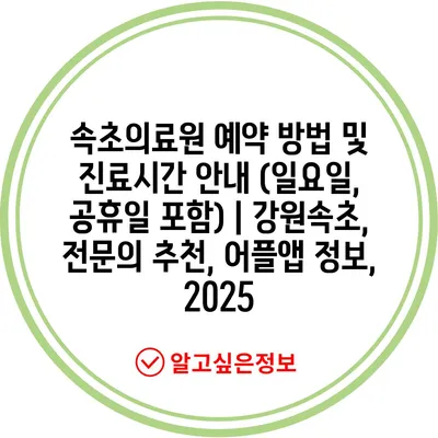 ✅ 속초의료원 예약 방법을 지금 바로 알아보세요!