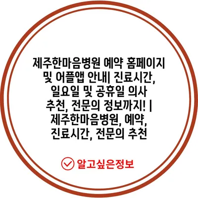✅ 제주한마음병원의 진료시간과 예약 방법을 자세히 알아보세요.
