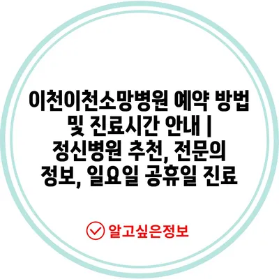 이천이천소망병원 예약 방법 및 진료시간 안내 | 정신병원 추천, 전문의 정보, 일요일 공휴일 진료
