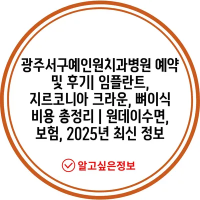 광주서구예인원치과병원 예약 및 후기| 임플란트, 지르코니아 크라운, 뼈이식 비용 총정리 | 원데이수면, 보험, 2025년 최신 정보로 시작합니다.