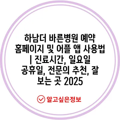 하남더 바른병원 예약 홈페이지 및 어플 앱 사용법 | 진료시간, 일요일 공휴일, 전연락 추천, 잘 보는 곳 2025 에 대해 자주 묻는 질문 TOP 5