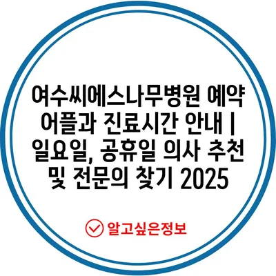 여수씨에스나무병원 예약 어플과 진료시간 공지 | 일요일, 공휴일 의사 추천 및 전연락 찾기 2025에 대해 알아보겠습니다.