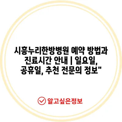 ✅ 시흥누리한방병원 예약 절차와 진료시간을 알아보세요.