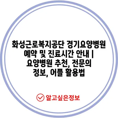 화성근로복지공단 경기요양병원 예약 및 진료시간 공지 | 요양병원 추천, 전연락 정보, 어플 활용법 에 대해 자주 묻는 질문 TOP 5