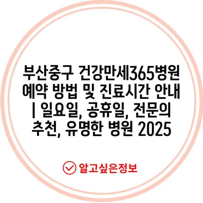 ✅ 부산중구 건강만세365병원의 예약 방법을 지금 바로 알아보세요!