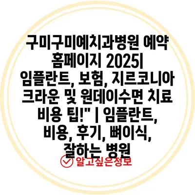 구미구미예치과병원 예약 홈페이지 2025| 임플란트, 보험, 지르코니아 크라운 및 원데이수면 치료 비용 팁!