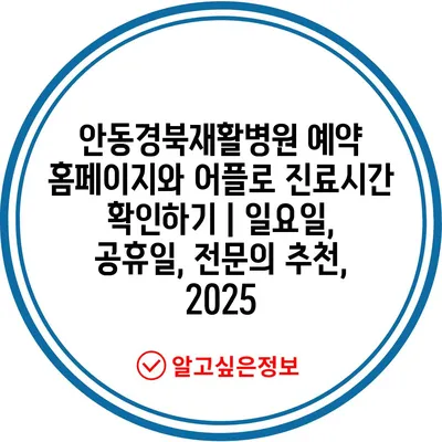안동경북재활병원 예약 홈페이지와 어플로 진료시간 확인하기 | 일요일, 공휴일, 전연락 추천, 2025에 대해 자주 묻는 질문 TOP 5