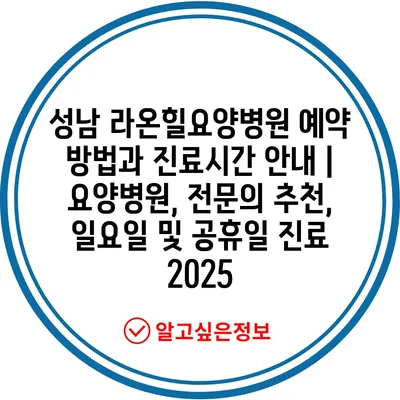 성남 라온힐요양병원 예약 방법과 진료시간 공지 | 요양병원, 전연락 추천, 일요일 및 공휴일 진료 2025 에 대해 자주 묻는 질문 TOP 5