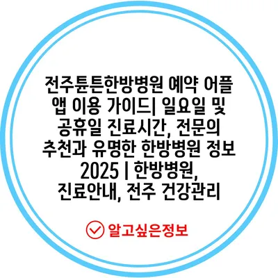전주튠튼한방병원 예약 어플 앱 이용 설명서| 일요일 및 공휴일 진료시간, 전연락 추천과 유명한 한방병원 정보 2025 | 한방병원, 진료공지, 전주 건강관리 에 대해 자주 묻는 질문 TOP 5