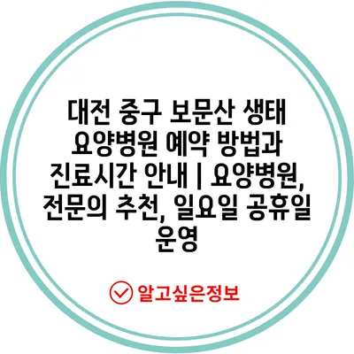 대전 중구 보문산 생태 요양병원 예약 방법과 진료시간 공지 | 요양병원, 전연락 추천, 일요일 공휴일 운영 에 대해 자주 묻는 질문 TOP 5