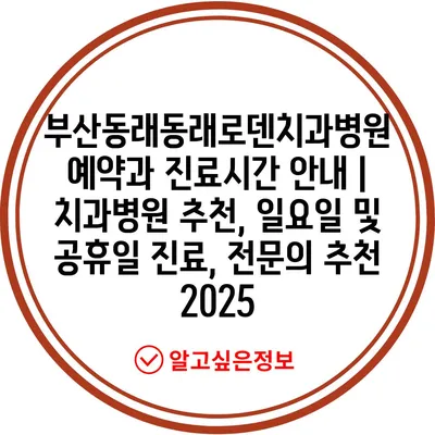 부산동래동래로덴치과병원 예약과 진료시간 공지 | 치과병원 추천, 일요일 및 공휴일 진료, 전연락 추천 2025 에 대해 자주 묻는 질문 TOP 5