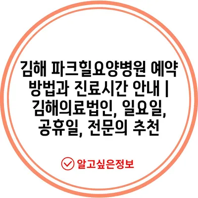 ✅ 김해 파크힐요양병원의 진료시간과 예약방법을 쉽게 알아보세요.