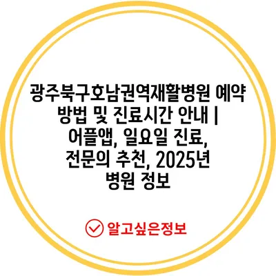 광주북구호남권역재활병원 예약 방법 및 진료시간 공지 | 어플앱, 일요일 진료, 전연락 추천, 2025년 병원 정보 에 대해 자주 묻는 질문 TOP 5