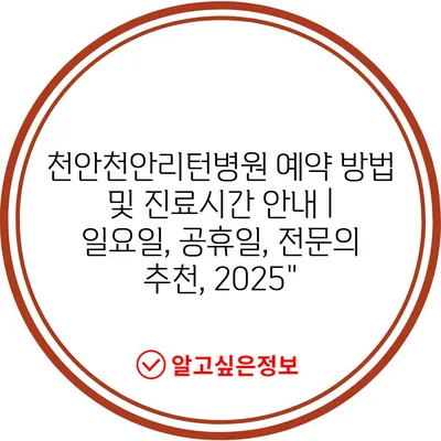 천안천안리턴병원 예약 방법 및 진료시간 공지 | 일요일, 공휴일, 전연락 추천, 2025
