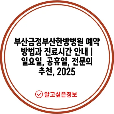 부산금정부산한방병원 예약 방법과 진료시간 공지 | 일요일, 공휴일, 전연락 추천, 2025에 대해 소개합니다.