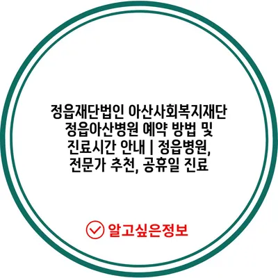 ✅ 정읍아산병원의 진료시간과 예약 방법을 지금 바로 알아보세요.