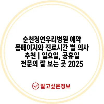 ✅ 순천청연우리병원의 진료시간과 예약 방법을 자세히 알아보세요.