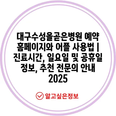 대구수성올곧은병원 예약 홈페이지와 어플 사용법 | 진료시간, 일요일 및 공휴일 정보, 추천 전연락 공지 2025에 대해 소개합니다.