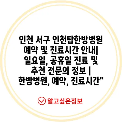 인천 서구 인천탑한방병원 예약 및 진료시간 공지| 일요일, 공휴일 진료 및 추천 전연락 정보 | 한방병원, 예약, 진료시간에 대해 자주 묻는 질문 TOP 5
