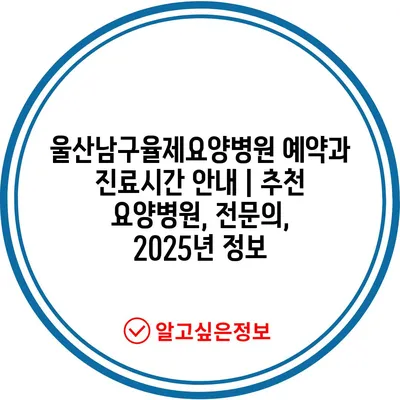 울산남구율제요양병원 예약과 진료시간 공지 | 추천 요양병원, 전연락, 2025년 정보 에 대해 자주 묻는 질문 TOP 5