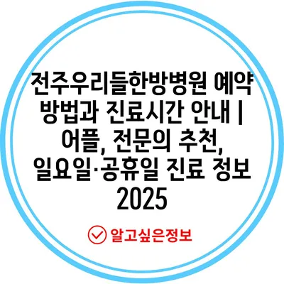 전주우리들한방병원 예약 방법과 진료시간 공지 | 어플, 전연락 추천, 일요일·공휴일 진료 정보 2025에 대해 알아보겠습니다.