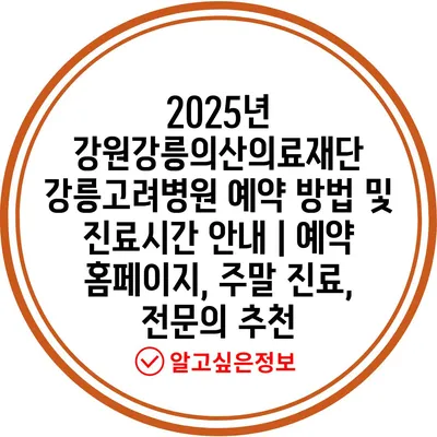 2025년 강원강릉의산의료재단 강릉고려병원 예약 방법 및 진료시간 공지 | 예약 홈페이지, 주말 진료, 전연락 추천 에 대해 자주 묻는 질문 TOP 5