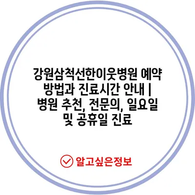 ✅ 삼척선한이웃병원의 예약 방법과 진료시간을 빠르게 알아보세요.