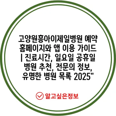 ✅ 고양원흥아이제일병원의 진료시간과 예약 방법을 알아보세요.