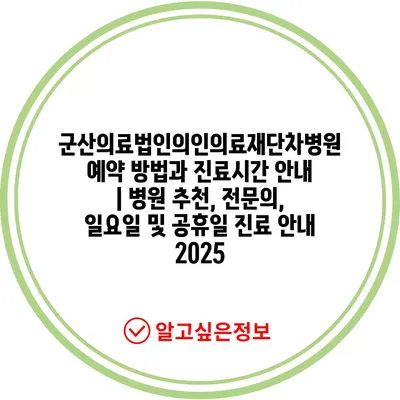 ✅ 군산의료법인의 진료 예약을 간편하게 확인해 보세요.