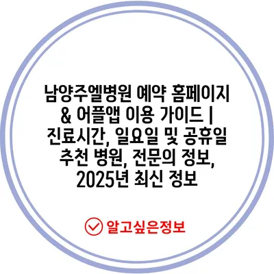 남양주엘병원 예약 홈페이지 & 어플앱 이용 설명서 | 진료시간, 일요일 및 공휴일 추천 병원, 전연락 정보, 2025년 최신 정보