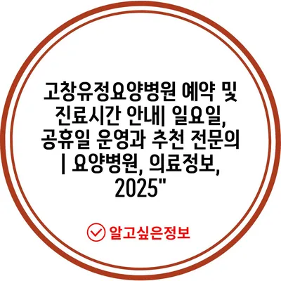고창유정요양병원 예약 및 진료시간 공지| 일요일, 공휴일 운영과 추천 전연락 | 요양병원, 의료정보, 2025에 대해 소개합니다.