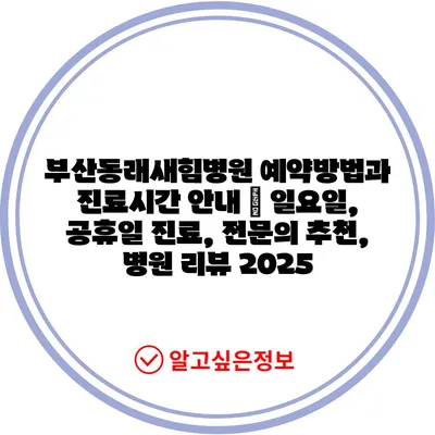 ✅ 부산동래새힘병원의 진료 시간과 예약 방법을 자세히 알아보세요.