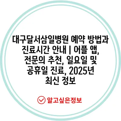 대구달서삼일병원 예약 방법과 진료시간 공지 | 어플 앱, 전연락 추천, 일요일 및 공휴일 진료, 2025년 최신 정보 에 대해 자주 묻는 질문 TOP 5