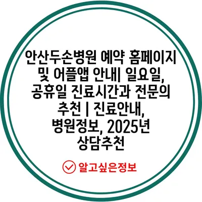 안산두손병원 예약 홈페이지 및 어플앱 공지| 일요일, 공휴일 진료시간과 전연락 추천 | 진료공지, 병원정보, 2025년 상담추천 에 대해 자주 묻는 질문 TOP 5