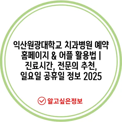 익산원광대학교 치과병원 예약 홈페이지 & 어플 활용법 | 진료시간, 전연락 추천, 일요일 공휴일 정보 2025에 대해 알아보겠습니다.