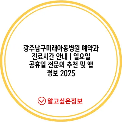 광주남구미래아동병원 예약과 진료시간 공지 | 일요일 공휴일 전연락 추천 및 앱 정보 2025 에 대해 자주 묻는 질문 TOP 5