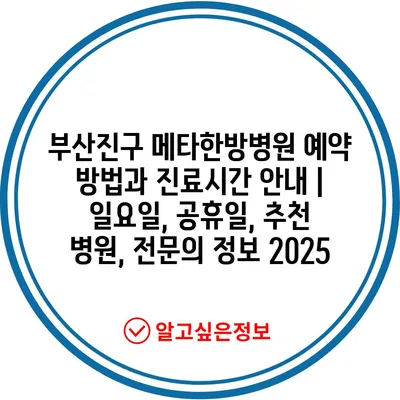 부산진구 메타한방병원 예약 방법과 진료시간 공지 | 일요일, 공휴일, 추천 병원, 전연락 정보 2025에 대해 자주 묻는 질문 TOP 5