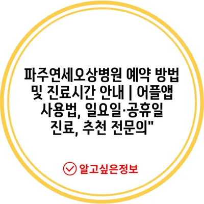✅ 파주연세오상병원의 예약 방법과 진료 시간을 자세히 알아보세요.