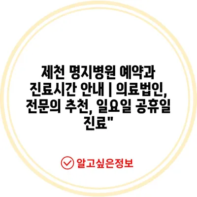 ✅ 제천 명지병원의 진료시간과 예약 방법을 지금 바로 알아보세요.