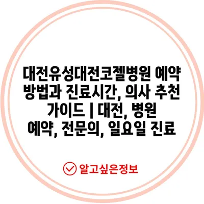 ✅ 대전유성대전코젤병원의 진료시간과 예약 방법을 자세히 알아보세요.