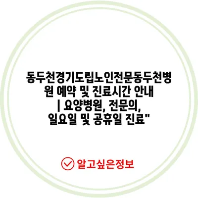 동두천병원 진료시간과 예약 방법을 자세히 알아보세요.