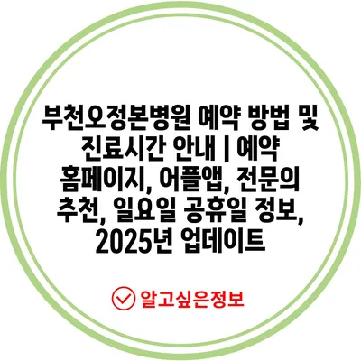부천오정본병원 예약 방법 및 진료시간 공지 | 예약 홈페이지, 어플앱, 전연락 추천, 일요일 공휴일 정보, 2025년 업데이트 에 대해 자주 묻는 질문 TOP 5