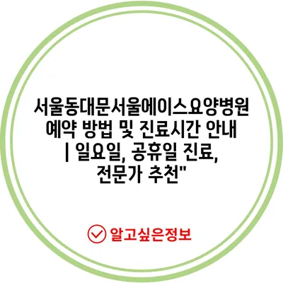✅ 서울동대문서울에이스요양병원의 예약 방법을 쉽게 알아보세요.