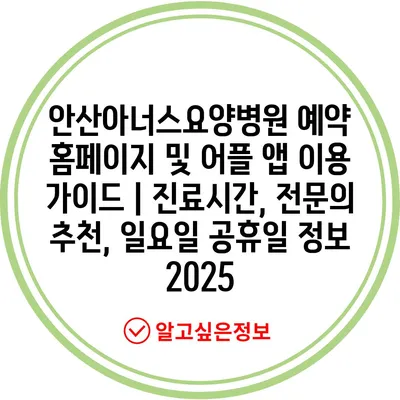 안산아너스요양병원 예약 홈페이지 및 어플 앱 이용 설명서 | 진료시간, 전연락 추천, 일요일 공휴일 정보 2025