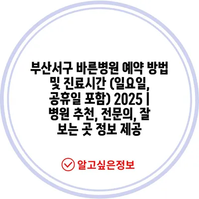 부산서구 바른병원 예약 방법 및 진료시간 (일요일, 공휴일 포함) 2025 | 병원 추천, 전연락, 잘 보는 곳 정보 제공 에 대해 자주 묻는 질문 TOP 5
