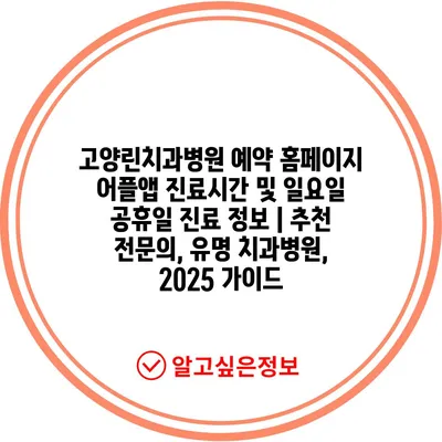 고양린치과병원 예약 홈페이지 어플앱 진료시간 및 일요일 공휴일 진료 정보 | 추천 전연락, 유명 치과병원, 2025 설명서 에 대해 자주 묻는 질문 TOP 5