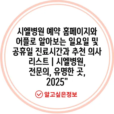 시엘병원 예약 홈페이지와 어플로 알아보는 일요일 및 공휴일 진료시간과 추천 의사 리스트 | 시엘병원, 전연락, 유명한 곳, 2025″ 에 대해 자주 묻는 질문 TOP 5
