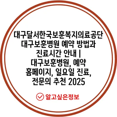 대구달서한국보훈복지의료공단 대구보훈병원 예약 방법과 진료시간 공지 | 대구보훈병원, 예약 홈페이지, 일요일 진료, 전연락 추천 2025 에 대해 자주 묻는 질문 TOP 5