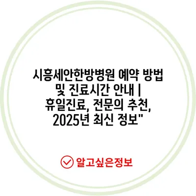 시흥세안한방병원 예약 방법 및 진료시간 공지 | 휴일진료, 전연락 추천, 2025년 최신 정보에 대해 자주 묻는 질문 TOP 5