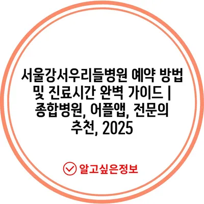 ✅ 서울강서우리들병원의 예약 방법과 진료시간을 지금 바로 알아보세요!